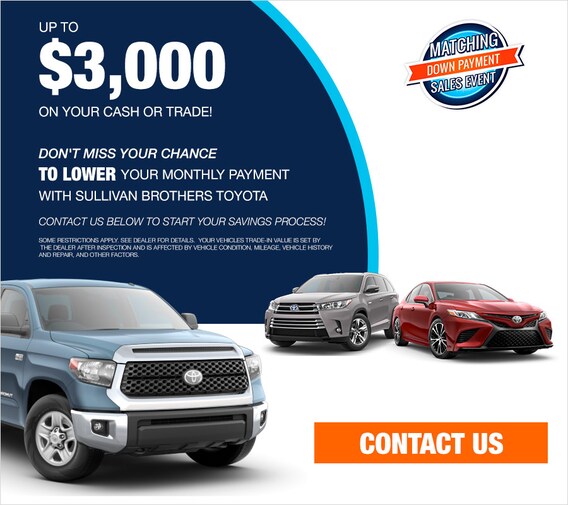 Sullivan brothers toyota offers a wide variety of new and used cars, toyota incentives, service specials and great savings on toyota parts.